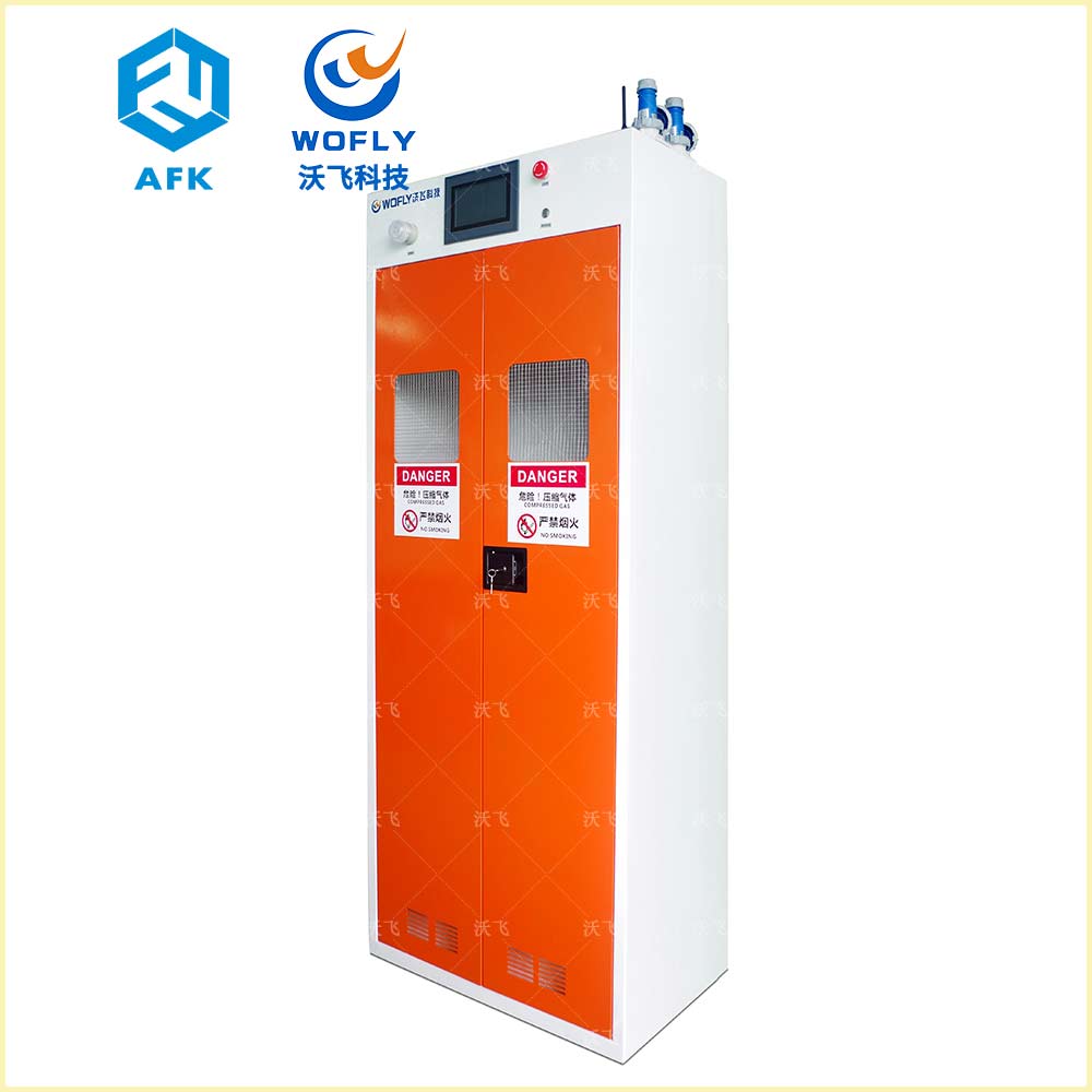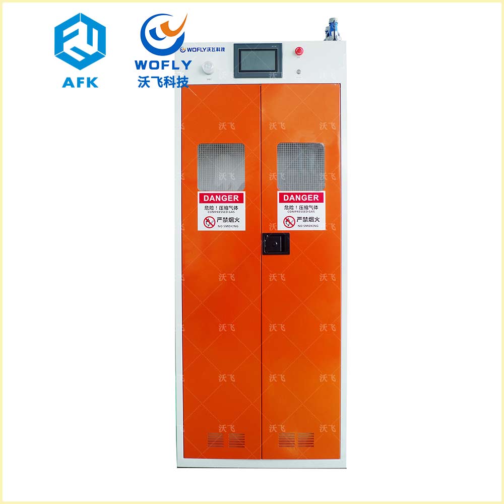 沃飛智能防爆氣瓶柜還配置了PLC面板、防爆軸流風機和防爆聲光報警器等,實現了氣體泄漏自動報警、壓力監控、全自動氣體切換等多種功能,防止了氣體泄漏、燃爆等事故現象的發生。